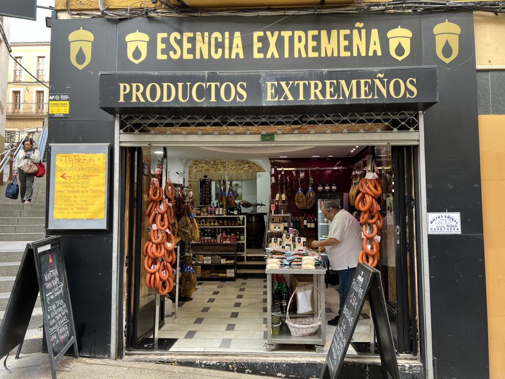 Around town, we’ve found shops selling sausages and local products of every variety. The term “Extremena” in the photo below describes products from this central, west region of Spain called Extramadura.