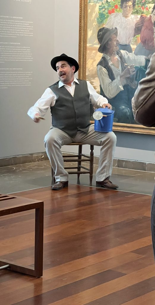 The rain today made it a good day to visit the Fine Arts Museum. It was a very nice museum with many large scale works of art and a special exhibition of etchings by Spanish artist Salvador Dalí. In front of some of paintings, actors dressed as subjects in the painting performed a short skit. It was a clever idea!