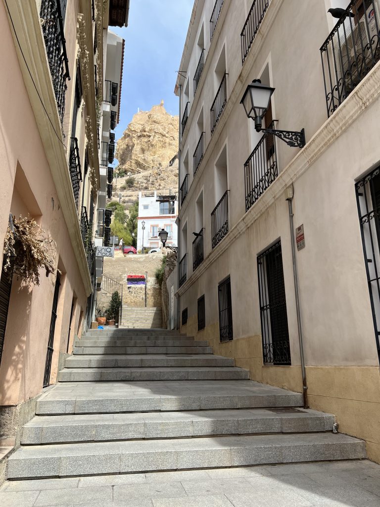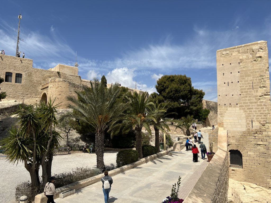 The oldest parts of the castle are from the 9th to 13th centuries. Once at the top, the views are spectacular. We could see the Mediterranean Sea, the city of Alicante, beaches below, and mountains in the distance.